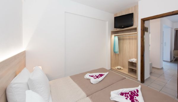 Cretan seaside boutique hotel 4* (Hersonissos) Localizare: la 100 m de plajă, accesibilă printr-un pasaj subteran și la distanță mică de restaurante și baruri. Facilități hotel: piscină exterioară, șezlonguri și umbrele la piscină, piscină pentru copii, restaurant, WiFi gratuit in zonele publice, teren volei, baschet sau badminton, Facilități contra cost: hidromasaj, masaj, biliard, minibar, seif. Facilități cameră dublă: pat matrimonial sau 2 paturi twin, TV satelit, balcon / terasă, uscător păr, baie cu duș,